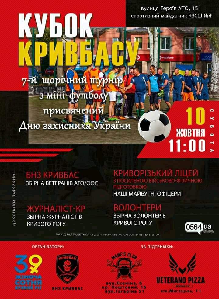 До Дня захисника України в Кривому Розі традиційно пройде футбольний турнір, в якому візьмуть участь бійці АТО/ООС, військові ліцеїсти, волонтери та журналісти.